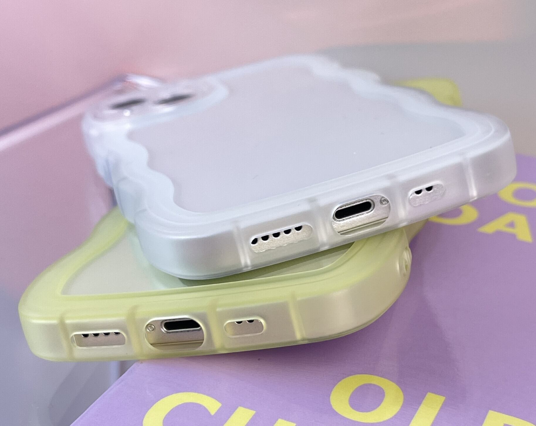 キュートなカラーとウェーブフレームが魅力的なiPhoneケース。ケースには柔軟性があり着脱しやすく本体と隙間なくフィット精巧な加工技術によって各ボタンやホール部分もズレなくピッタリ。