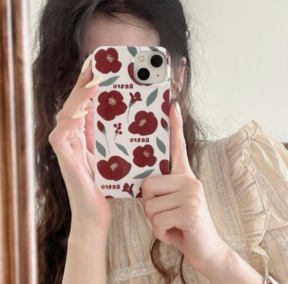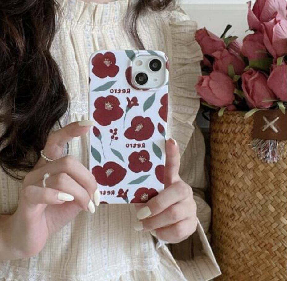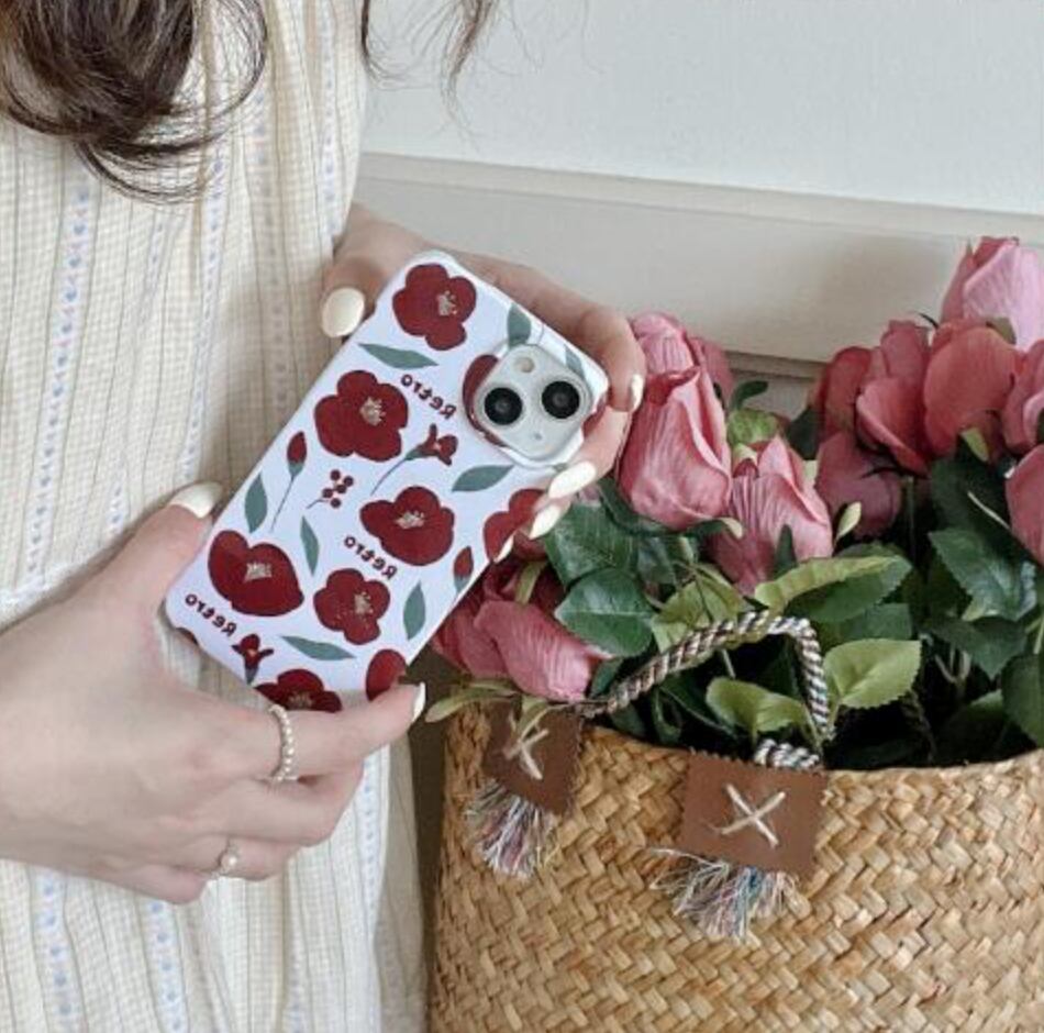 かわいい赤いお花模様のスマホケース♪